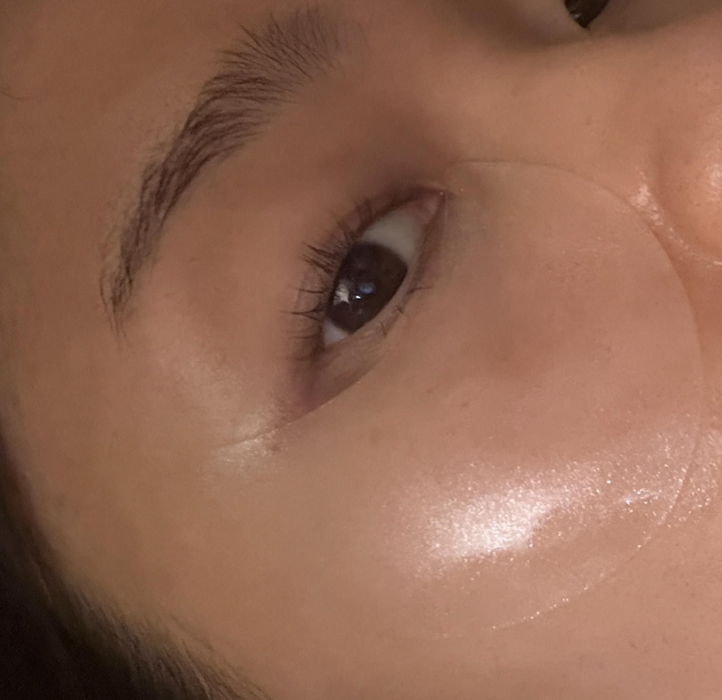 뚜껑을 열면 위생을 고려한 투명 보호캡이 한 겹 덧대어 있고, 그 아래로 에센스에 흠뻑 젖은 하이드로겔 타입의 패치가 담겨 있다. 반달형 패치는 두 가지 형태로 들어 있는데, 눈 밑의 라인에 맞춰 사용할 수 있도록 디자인되어 있다. 얇고 말랑한 소재 덕분에 피부에 부담 없이 착 밀착되며, 움직여도 들뜨지 않아 안정적인 사용감을 느낄 수 있었다.
